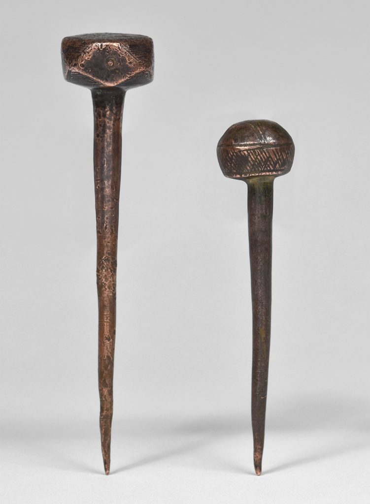3. Sai (Metal Truncheon) – Sai consists of a metal truncheon with a pointed tip, a round handle, and two prongs (tsuba) projecting from the sides near the handle. The prongs can be used for trapping, blocking, and striking techniques. Sai are typically used in pairs, and the practitioner holds one in each hand.
