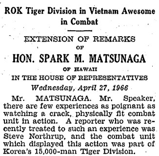I have marched with virtually every major American and Vietnamese unit. None of them impressed me as much as the Koreans. They really are tigers.”